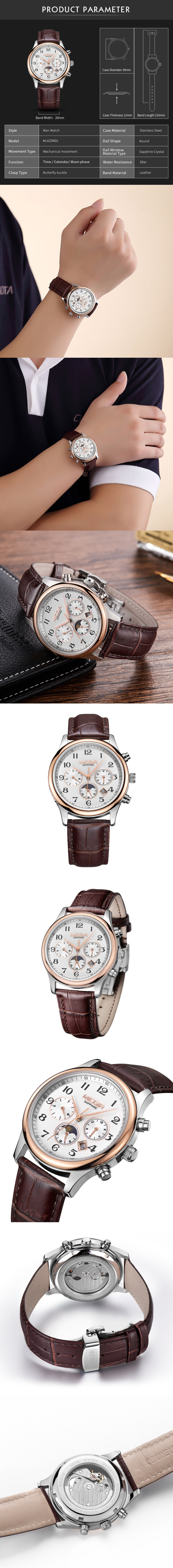 MEGIR Men Automatic Mechanical Watches Moon Phase Brown Leather Casual Business Wristwatch Sapphire Date Clock Montre Homme 62046